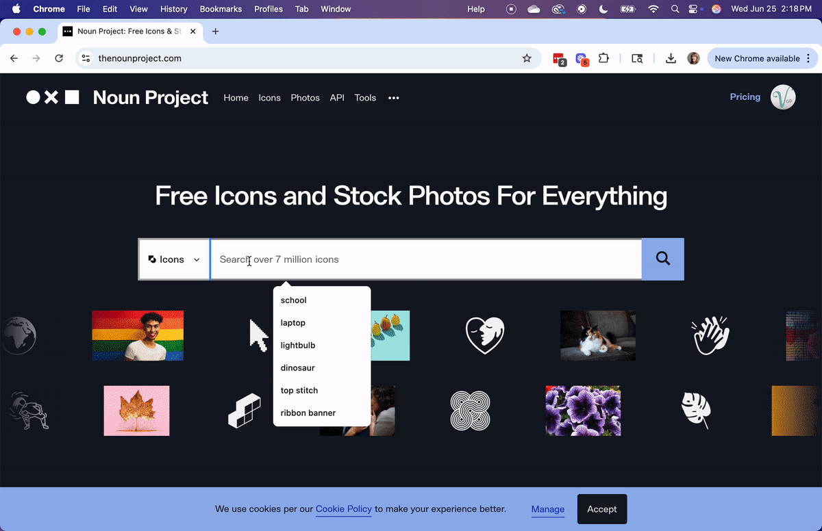For 2025, The Noun Project allows you to filter by “solid” or “line”—which makes matching your brand or project aesthetic way easier. They’ve also rolled out some handy editing tools, including resizing and layering, right in the browser.